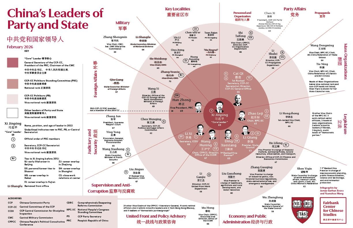 China’s leadership mapped out - the leadership structure radiates outwards from Xi Jinping - who assumes the role of the ‘Core Leader’.