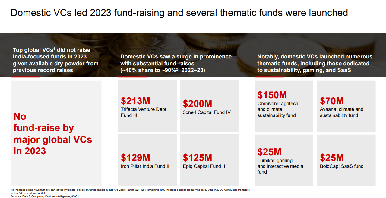 Given the constraints of the Indian market, VCs are increasingly adopting smaller fund sizes, typically in the $200 to $300 million range. These smaller funds can achieve reasonable returns by investing in startups with $1 to $5 billion valuations. However, larger funds, often exceeding $500 million, struggle to deliver high returns in the Indian context.